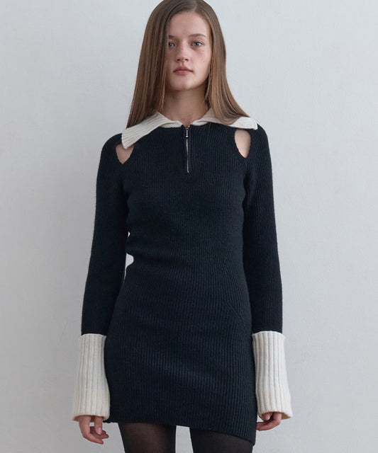 Zip-Up Knit Dressリブ編み ウールニットワンピース