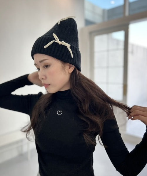 ipugo/イプゴ ワンポイントハート刺繍モックネックトップス